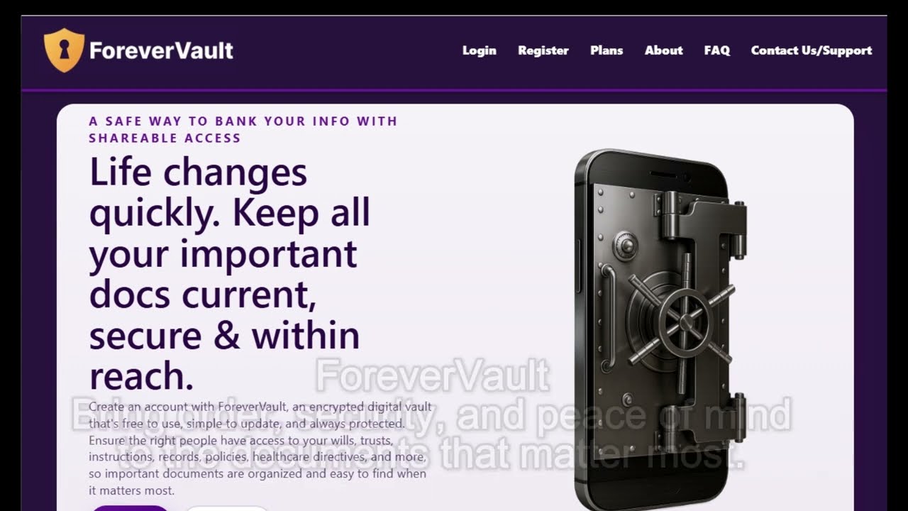 In less than one minute you'll see how ForeverVault helps families keep important documents secure, organized, and accessible when they are needed most.
